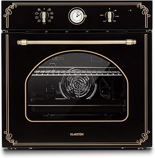 Klarstein Victoria - Forno da Incasso Ventilato, Forno Elettrico, Design Retrò, 9 Funzioni, Timer, 50-250°C, Volume 70 L, Porta Rimovibile per Facile Pulizia, llluminazione, Nero